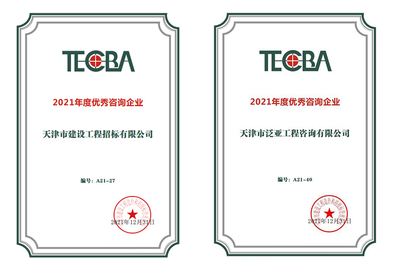 近日,從天咨公司下屬公司傳來喜報,在天津市建設工程造價和招投標管理協會公布的2021年度優秀咨詢企業獎項的評選中,天咨下屬泛亞公司和招標公司雙雙榮獲“2021年度優秀咨詢企業”榮譽稱號。