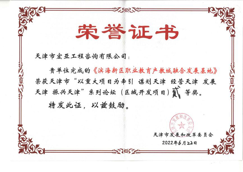 同時,天咨下屬監理公司,宏亞公司也憑借著多年的專業經驗獲得相關部門表彰。監理公司服務的天津地鐵5號線工程土建施工第R6合同段獲得天津市建筑協會頒發的2021年度天津市建設工程“金獎海河杯”獎;宏亞公司的《濱海新區職業教育產教融合發展
