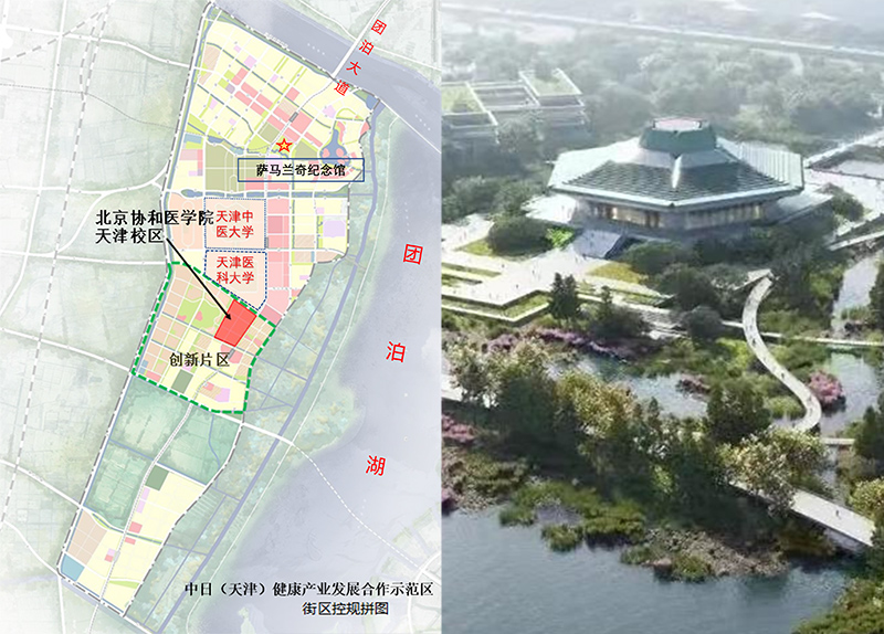 北京協和醫學院是國家衛健委直屬、與中國醫學科學院實行院校合一管理體制的全國重點大學和國家“雙一流”建設高校。2021年5月,北京協和醫學院與天津市政府簽署合作協議,雙方圍繞科技創新、醫療服務、人才培養和成果轉化等方面展開深入合作,共建中國醫學科技創新體系核心基地天津基地,這是天津市落實京津冀協同發展重大國家戰略、承接北京非首都功能疏解的標志性成果之一,也是提升天津市教育、醫療、科研水平的重要契機。該項目是協和醫學院天津基地四大板塊之一,項目選址在天津市靜海區團泊新城,位于中日(天津)健康產業發展合作示范區內,毗鄰天津醫科大學(新校區)、天津中醫藥大學(三期)、現代中藥創新中心。該項目占地約700畝,規劃總建筑面積20萬平方米,將按照院校分校建設標準,依托綜合性醫院,建成集本科、研究生教育于一體的教學基地。