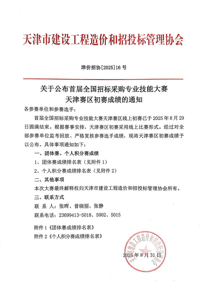 近日,由天津市建設工程造價和招投標管理協會舉辦的首屆全國招標采購專業技能大賽天津賽區比賽圓滿落幕。此次天津賽區匯聚了全市25家優秀企業和140名行業精英同臺競技,天津咨詢所屬泛亞咨詢在激烈競爭中脫穎而出,斬獲團體賽桂冠,武宇哲、石恩婧、張典等3名員工成功躋身全市個人積分賽排名前十,充分彰顯了泛亞咨詢在招標采購領域的專業實力與人才優勢。